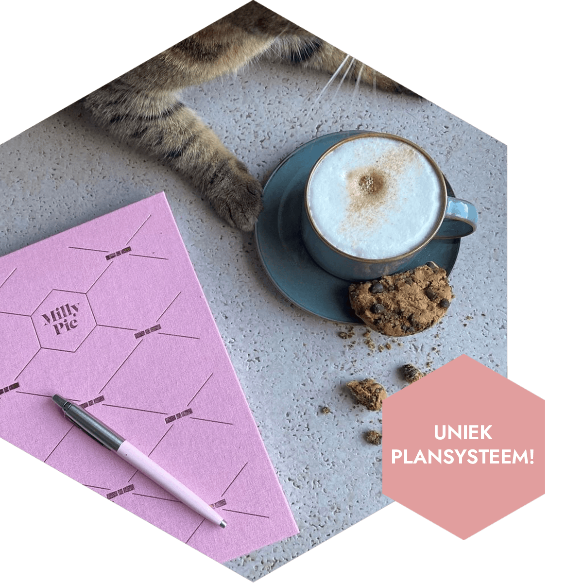 De Milly Pie heeft een eenvoudig en overzichtelijk planningsysteem om je te helpen je te concentreren op je doelen en dromen. Verhoog je productiviteit en vind balans in de drukte van 1001 dingen die je wilt doen. Bovendien is de planner ongedateerd, zodat jij bepaalt wanneer je begint. En als je de Milly Pie even niet gebruikt, hoef je geen pagina’s te verspillen; je kunt gewoon verdergaan wanneer het jou uitkomt. Want je bent tenslotte een Milly Pie, een vrouw die 1001 dingen tegelijk wil doen, maar ook wil genieten van het goede leven.